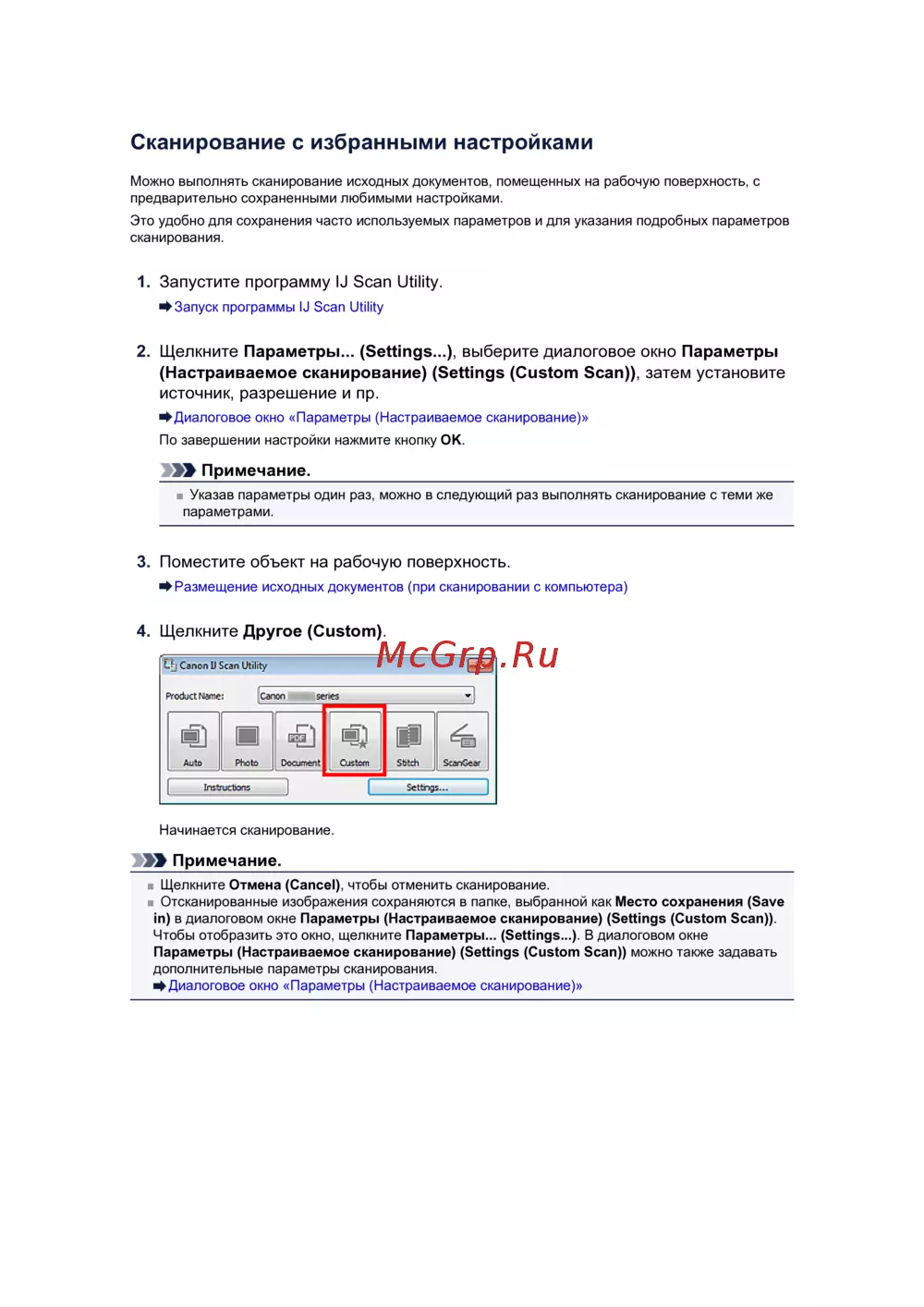 ![Canon PIXMA MX454 [494/897] Щелкните параметры settings выберите диалоговое окно параметры настраиваемое сканирование settings custom scan затем установите источник разрешение и пр](/views2/1938033/page494/bg1ee.png)
