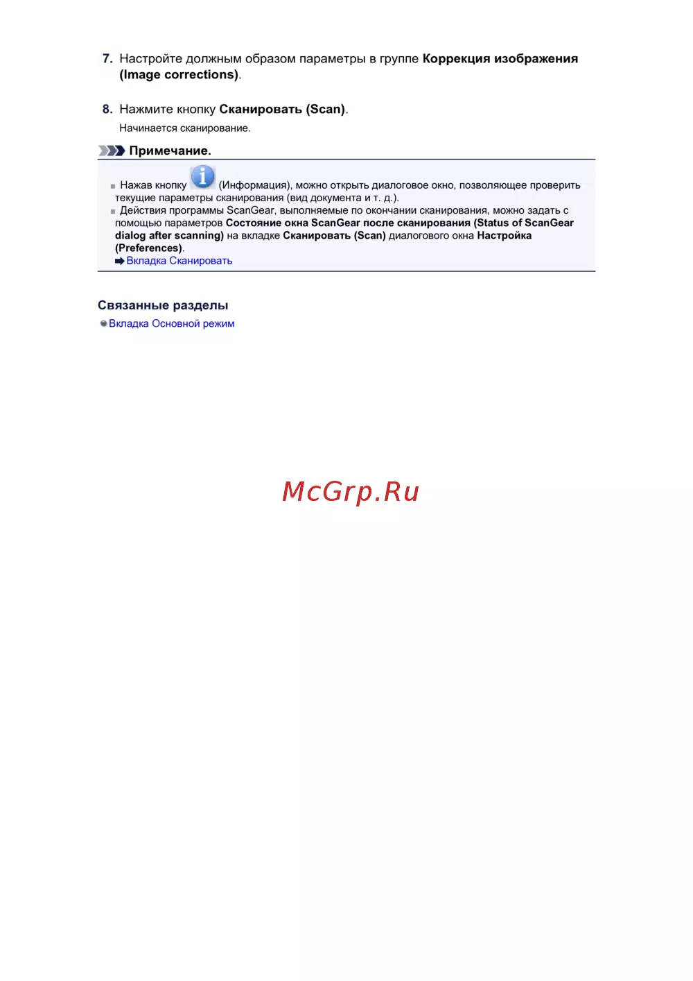 помощью параметров Состояние окна ScanGear после сканирования (Status of ScanGear