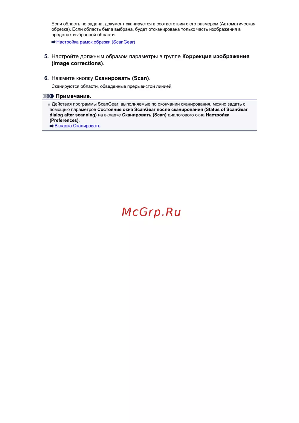 обрезка). Если область была выбрана, будет отсканирована только часть изображения в