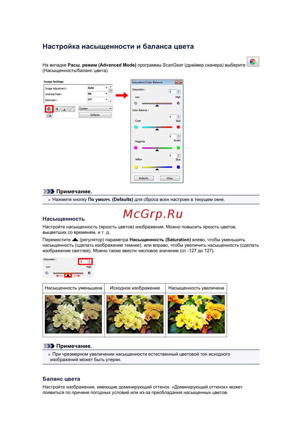 (Насыщенность/баланс цвета).