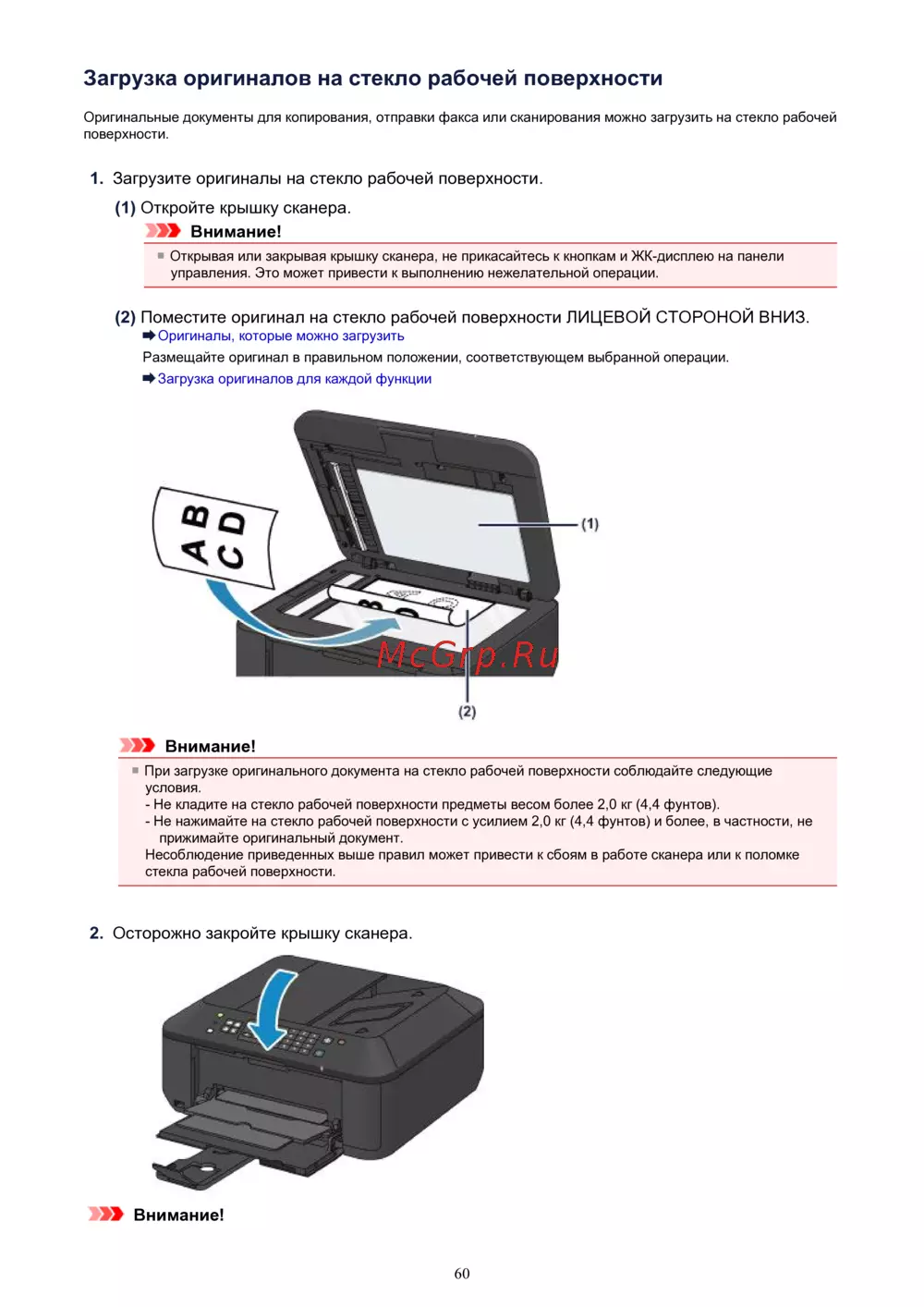 Canon PIXMA MX454 [60/897] Осторожно закройте крышку сканера