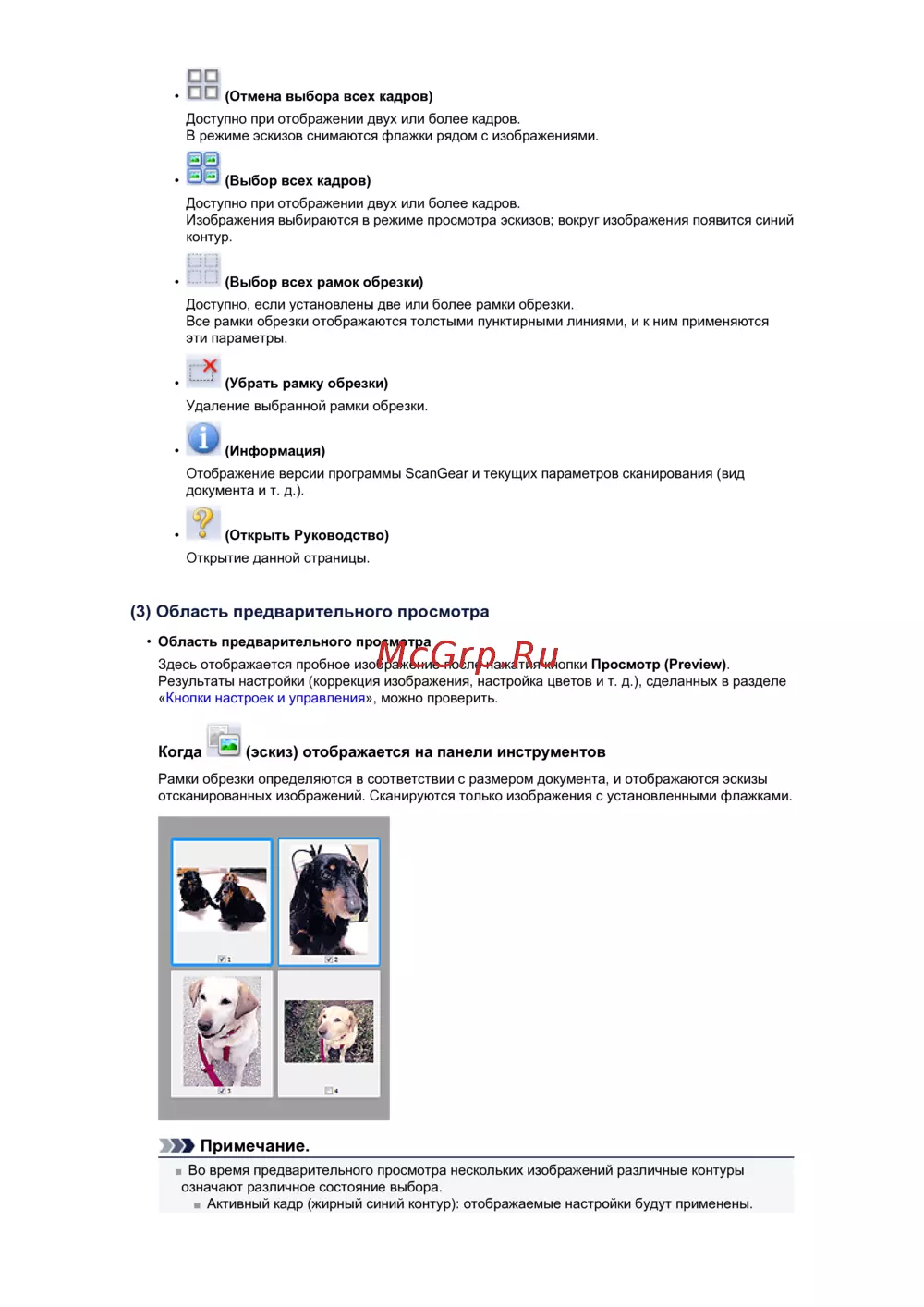 отсканированных изображений. Сканируются только изображения с установленными флажками.