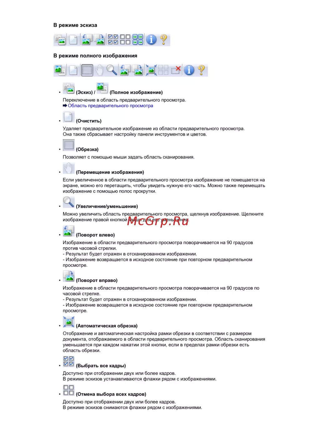 документа, отображаемого в области предварительного просмотра. Область сканирования