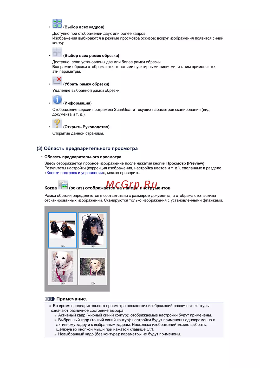 (3) Область предварительного просмотра