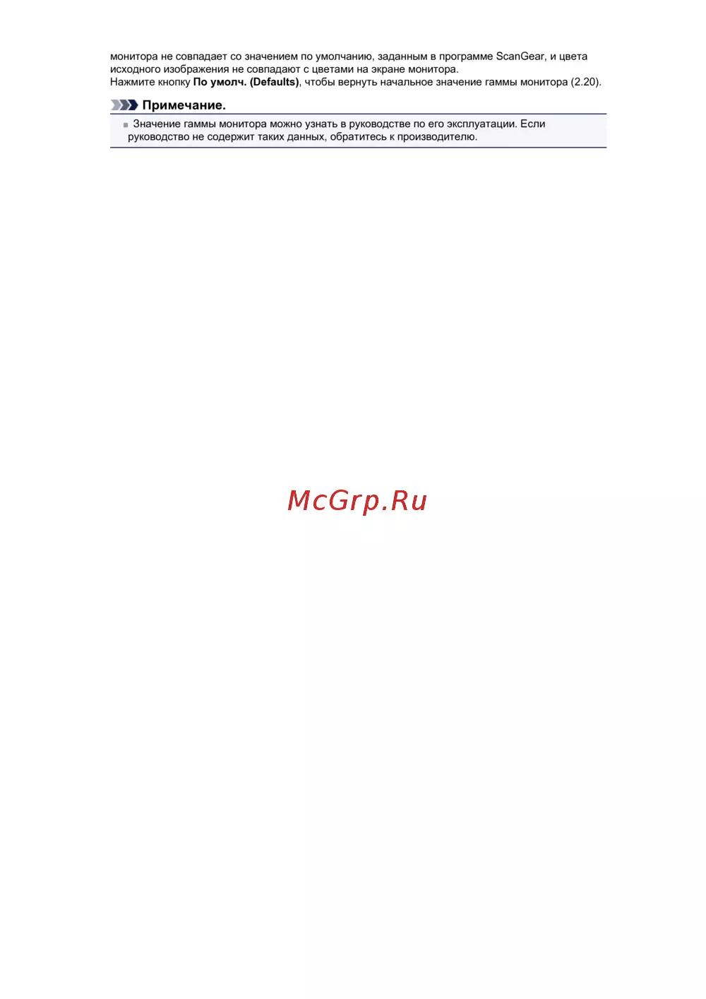 монитора не совпадает со значением по умолчанию, заданным в программе ScanGear, и цвета