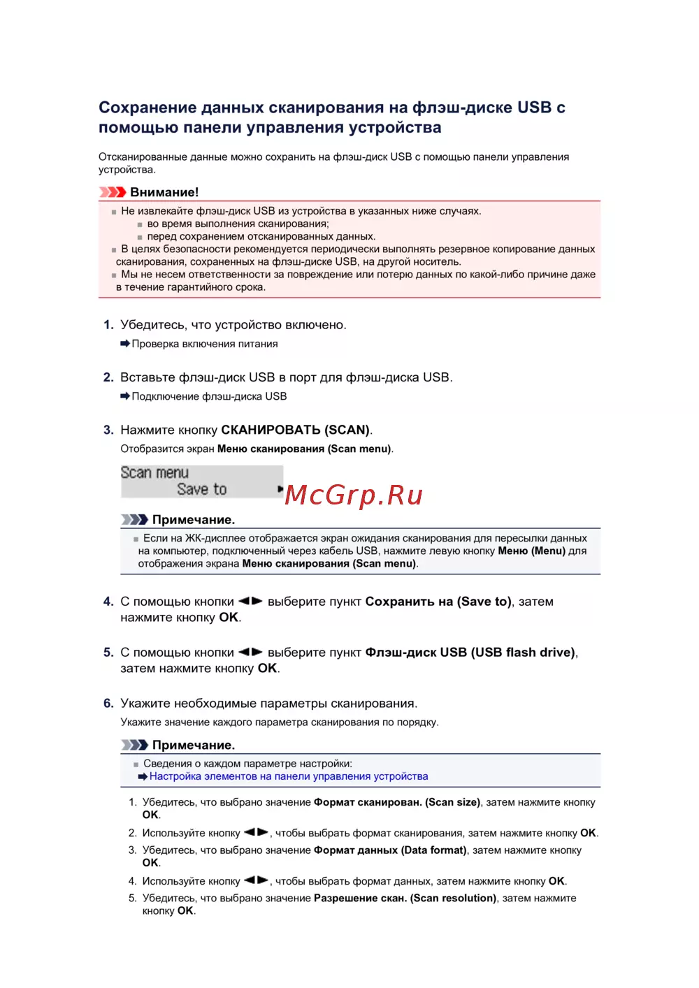 Отсканированные данные можно сохранить на флэш-диск USB с помощью панели управления