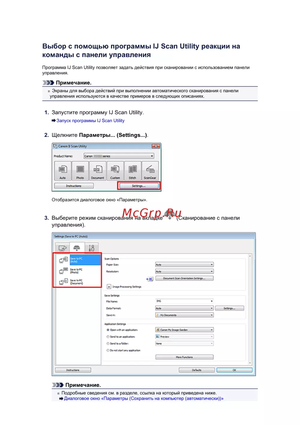 Программа IJ Scan Utility позволяет задать действия при сканировании с использованием панели