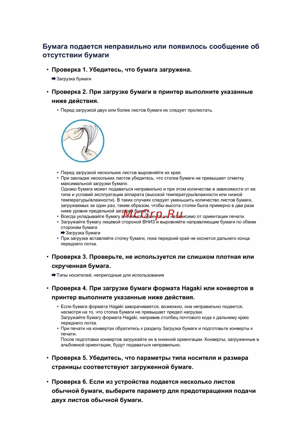 Проверка 2. При загрузке бумаги в принтер выполните указанные
