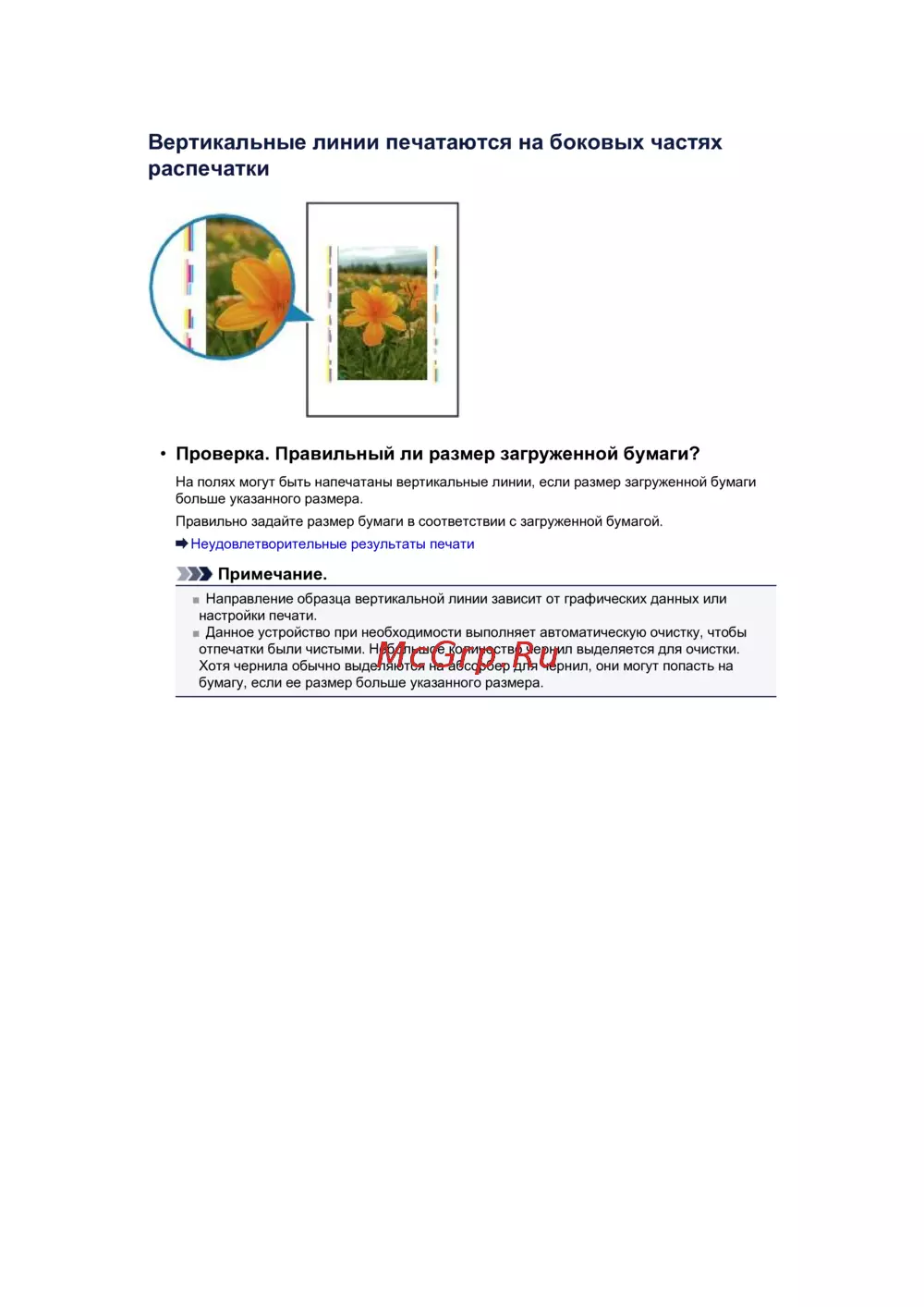 На полях могут быть напечатаны вертикальные линии, если размер загруженной бумаги