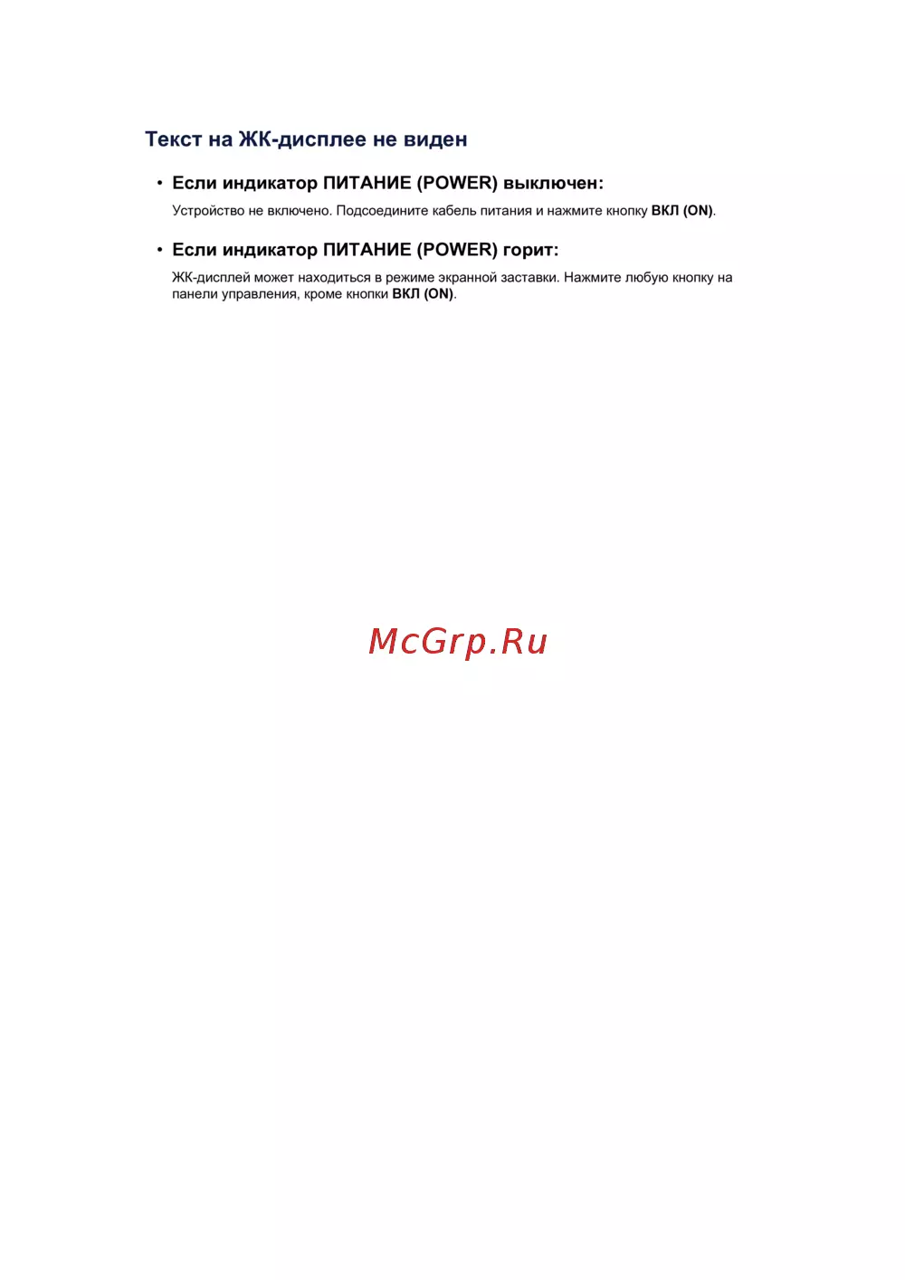 Если индикатор ПИТАНИЕ (POWER) горит: