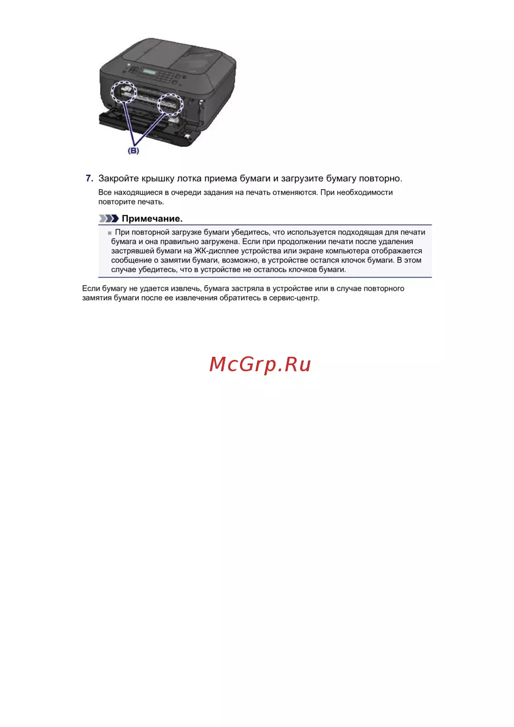Canon PIXMA MX454 [826/897] Закройте крышку лотка приема бумаги и загрузите бумагу повторно