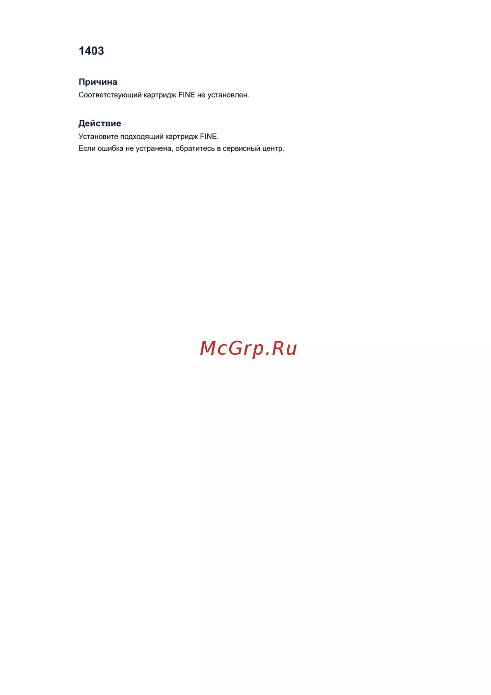 Если ошибка не устранена, обратитесь в сервисный центр.