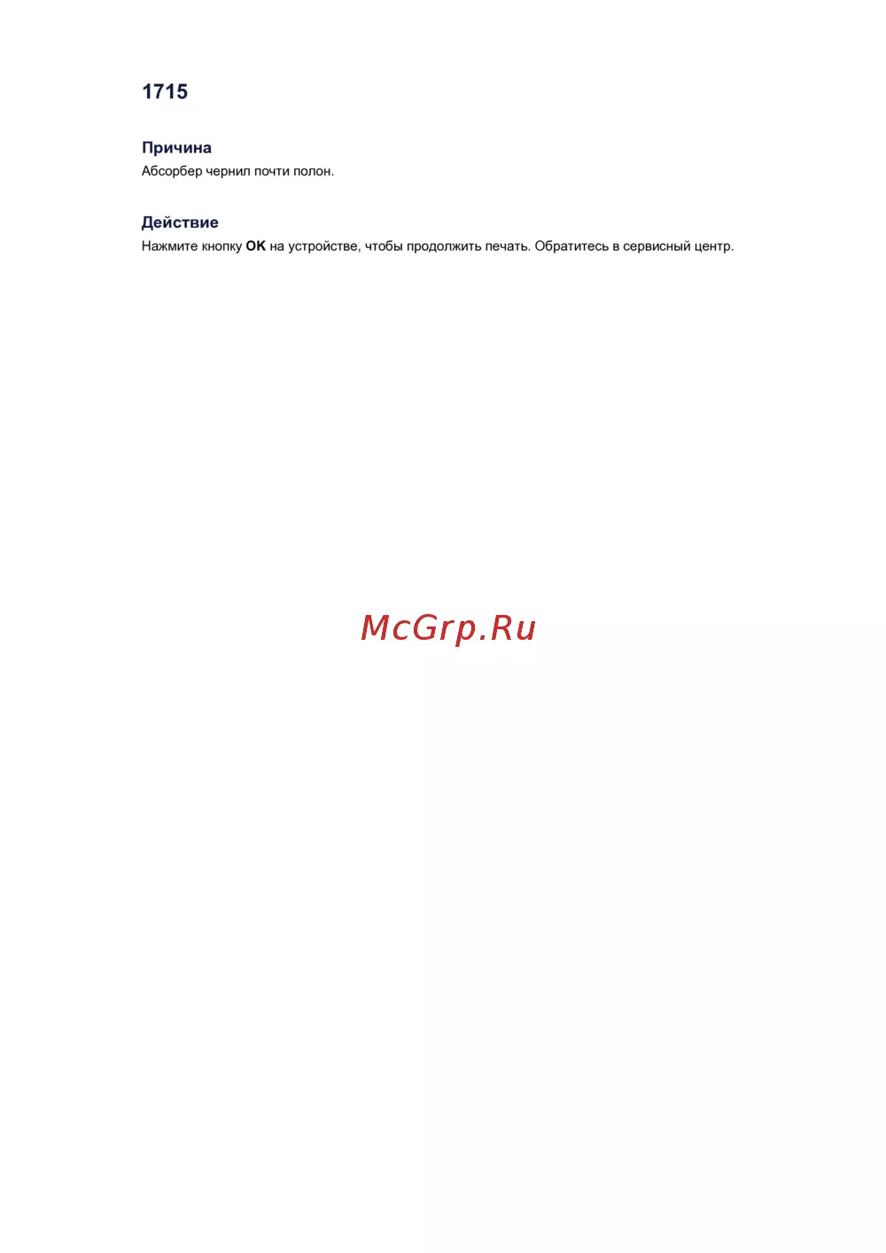 Нажмите кнопку OK на устройстве, чтобы продолжить печать. Обратитесь в сервисный центр.