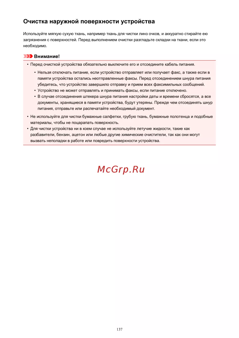 Canon PIXMA MX474 [137/980] Очистка наружной поверхности устройства