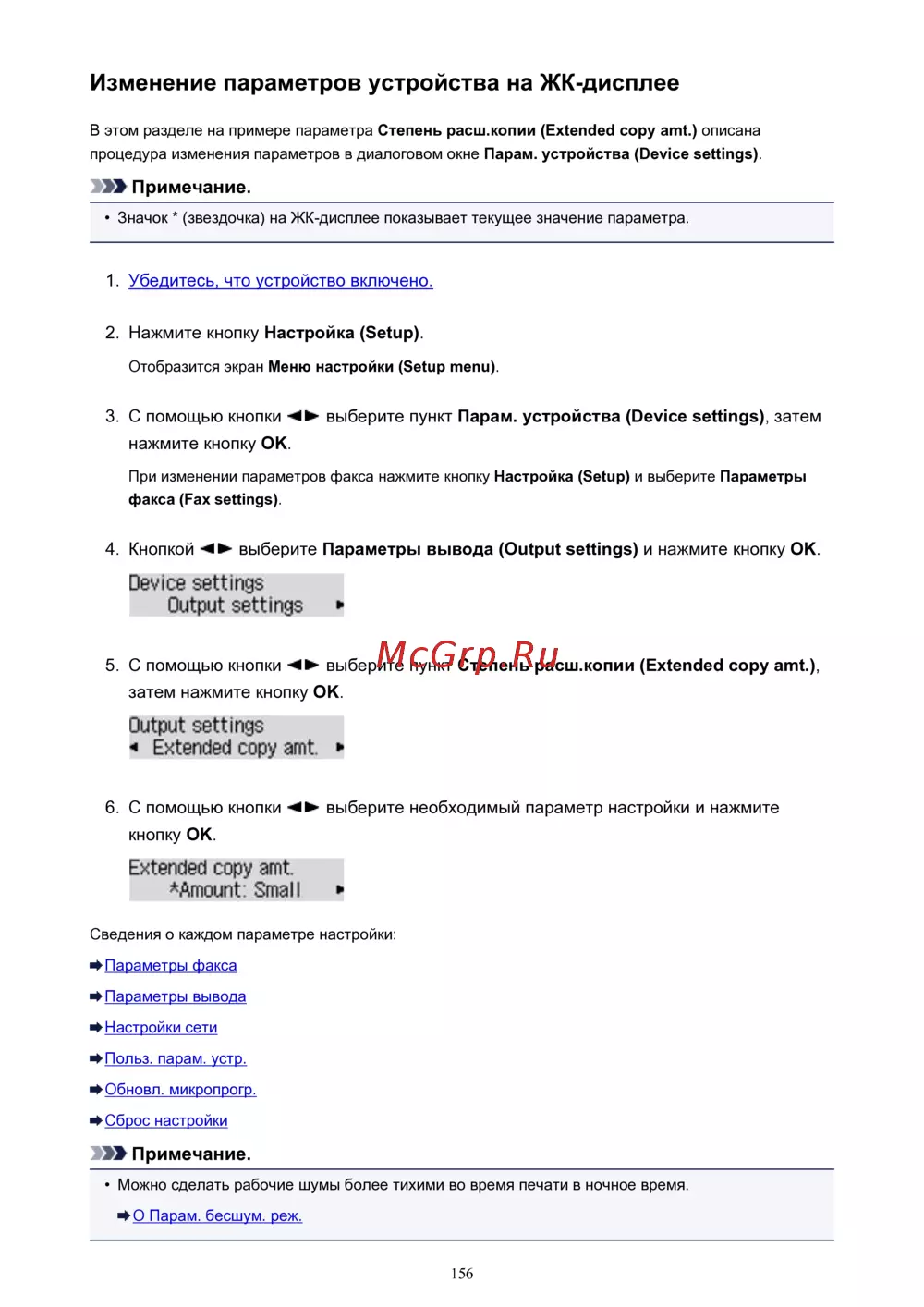 С помощью кнопки выберите пункт Парам. устройствa (Device settings), затем