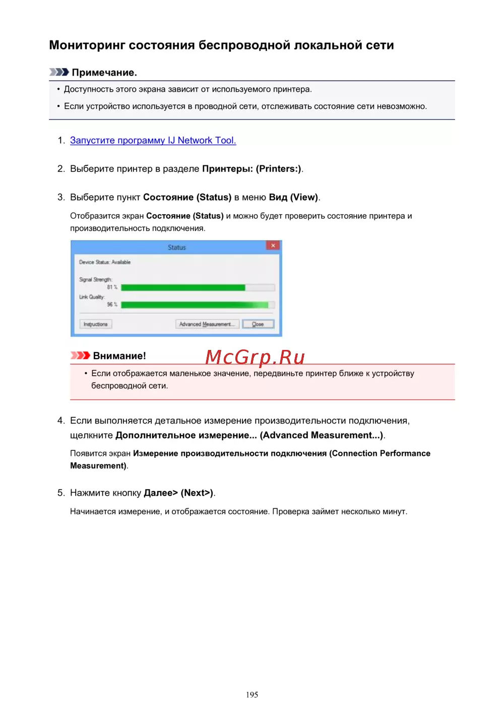 • Если устройство используется в проводной сети, отслеживать состояние сети невозможно.