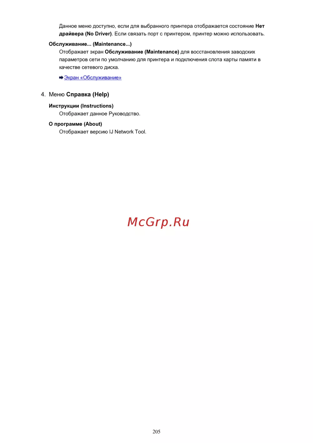 Данное меню доступно, если для выбранного принтера отображается состояние Нет