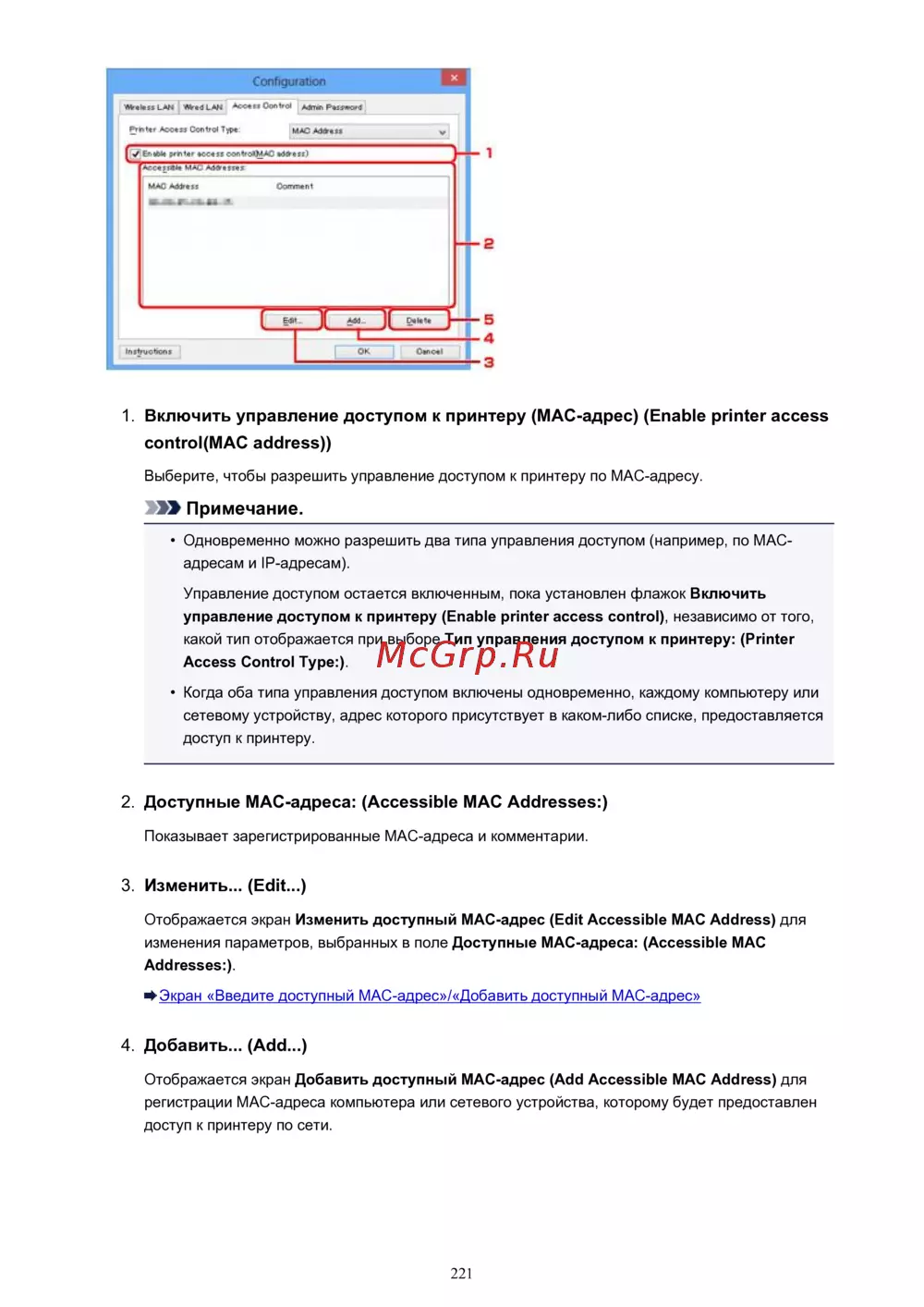 Включить управление доступом к принтеру (MAC-адрес) (Enable printer access