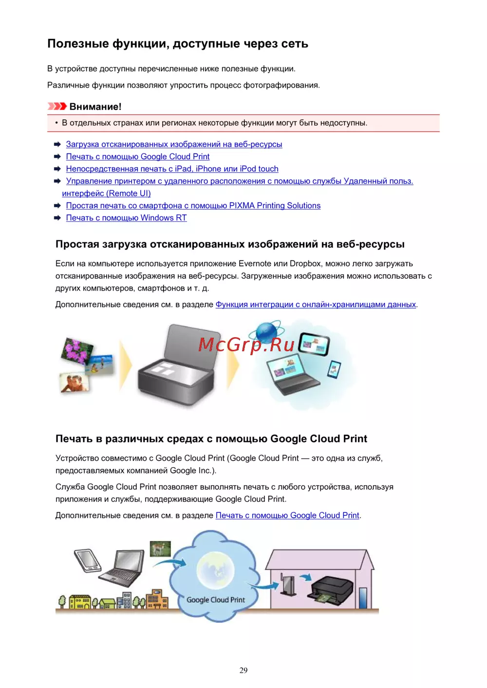 Устройство совместимо с Google Cloud Print (Google Cloud Print — это одна из служб,