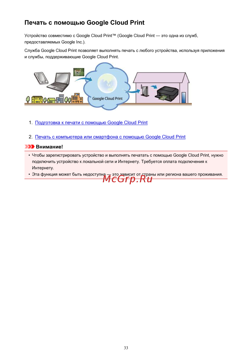 Canon PIXMA MX474 [33/980] Подготовка к печати с помощью google cloud print