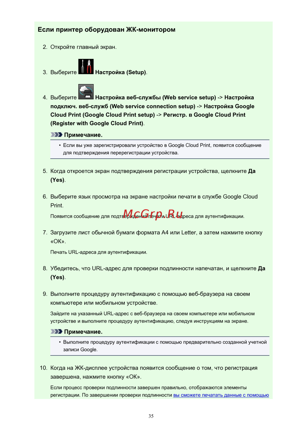 Cloud Print (Google Cloud Print setup) -> Регистр. в Google Cloud Print