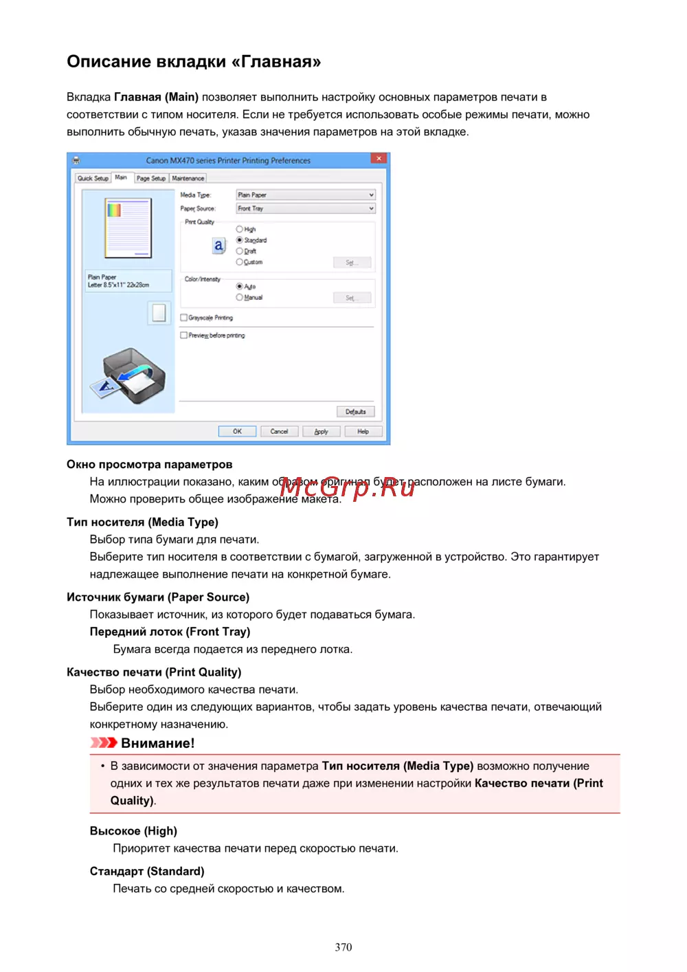 Canon PIXMA MX474 [370/980] Описание вкладки главная
