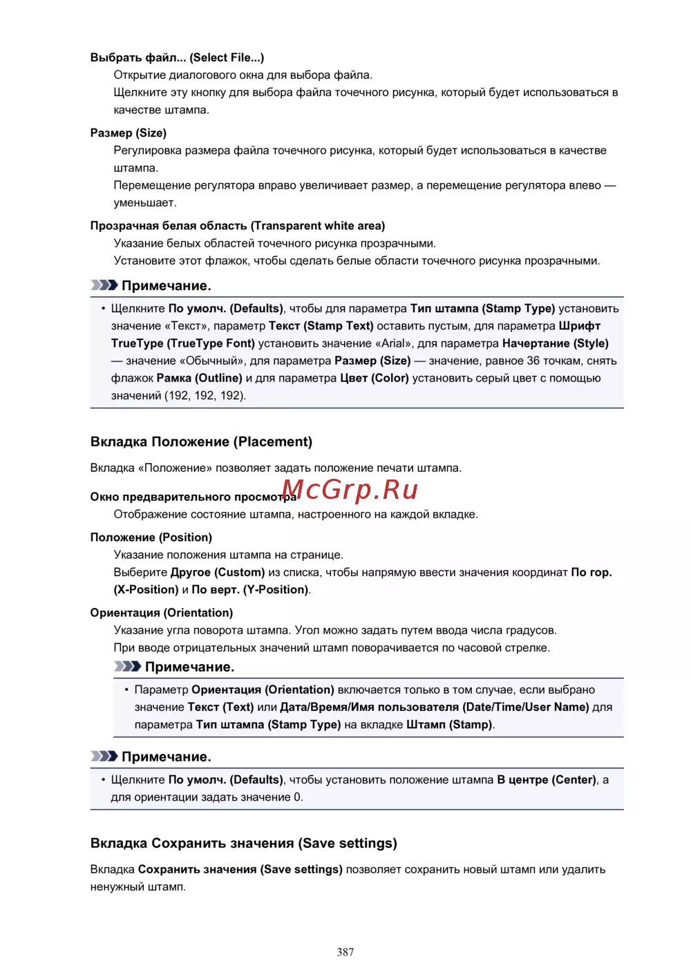 Щелкните По умолч. (Defaults), чтобы для параметра Тип штампа (Stamp Type) установить