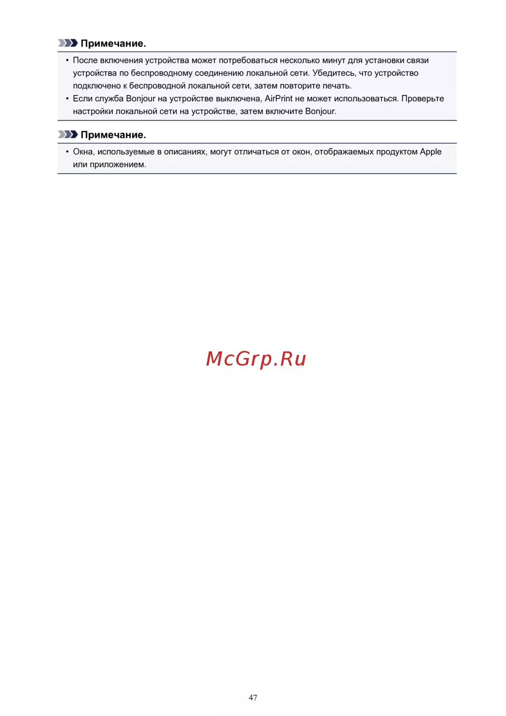 • Если служба Bonjour на устройстве выключена, AirPrint не может использоваться. Проверьте