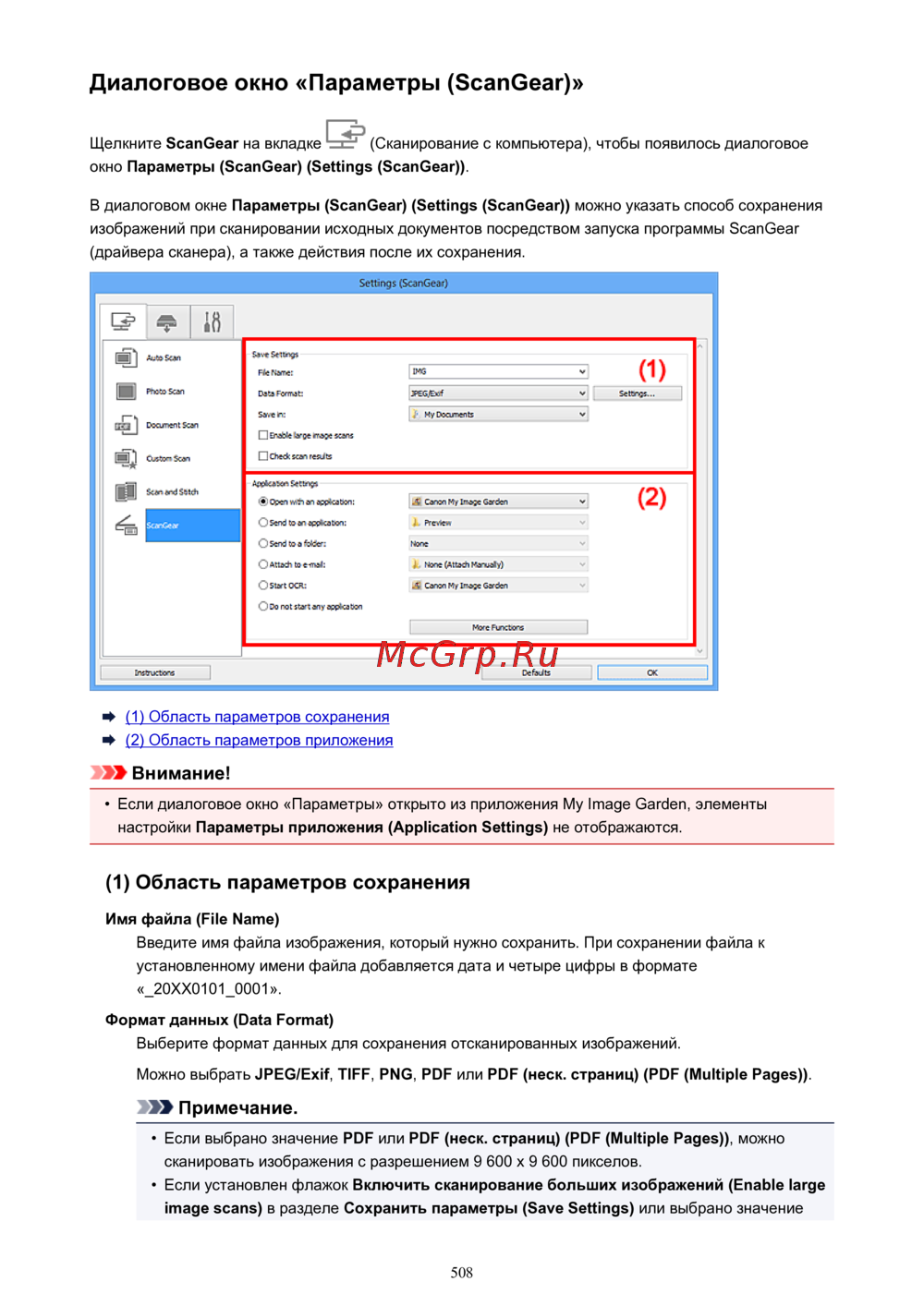 изображений при сканировании исходных документов посредством запуска программы ScanGear