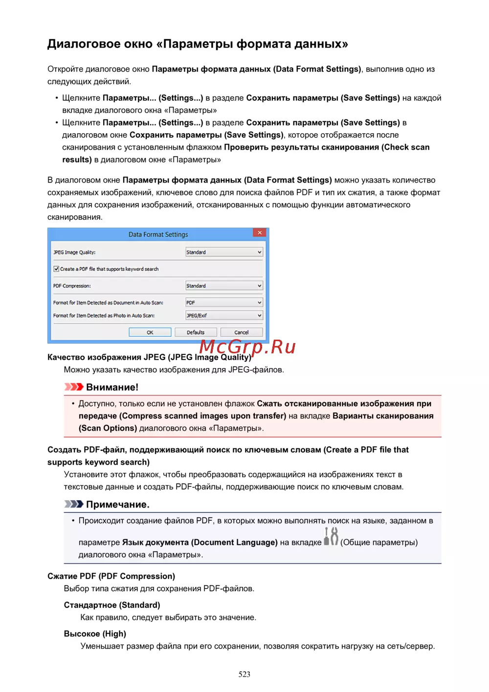 Доступно, только если не установлен флажок Сжать отсканированные изображения при