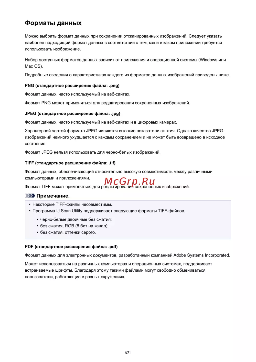 Программа IJ Scan Utility поддерживает следующие форматы TIFF-файлов.
