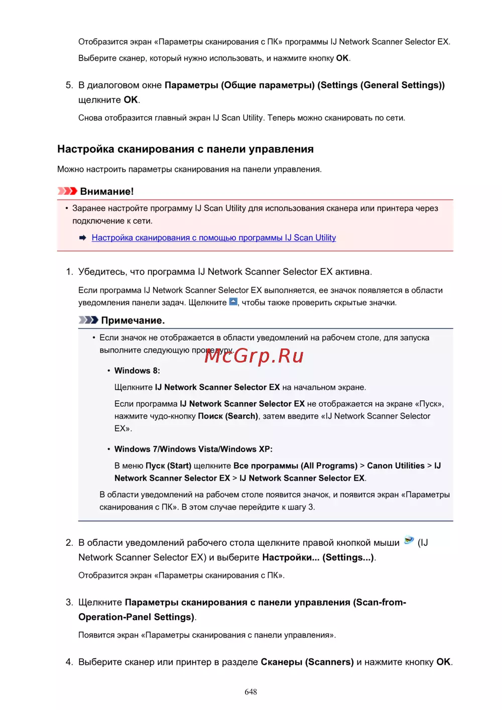 - Сканирование с панели управления устройства 638 p.10