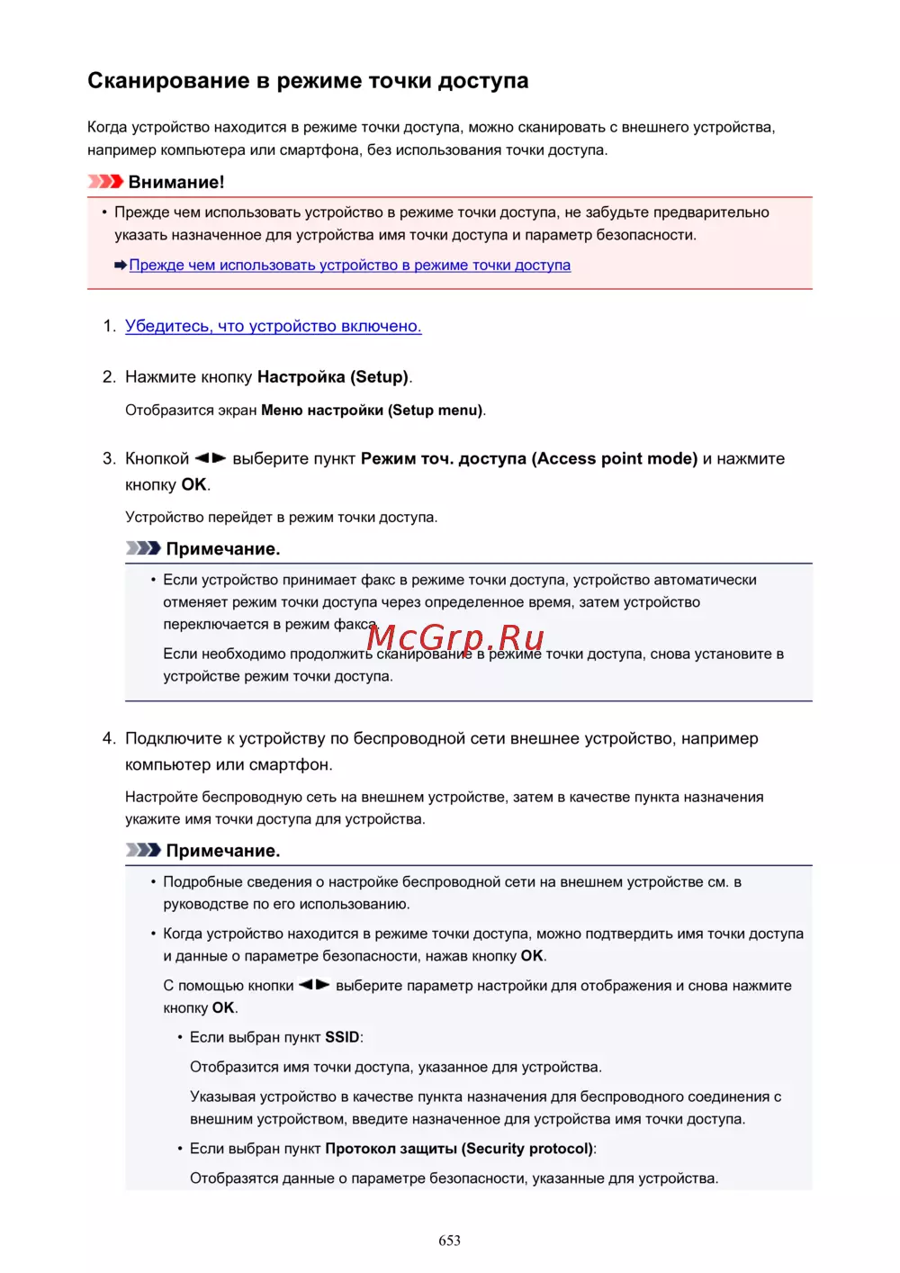 ![Canon PIXMA MX474 [653/980] Выберите пункт режим точ доступа access point mode и нажмите](/views2/1938035/page653/bg28d.png)