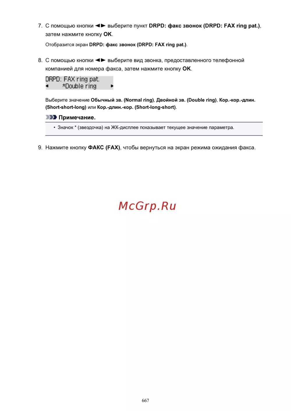 7. С помощью кнопки выберите пункт DRPD: факс звонок (DRPD: FAX ring pat.),