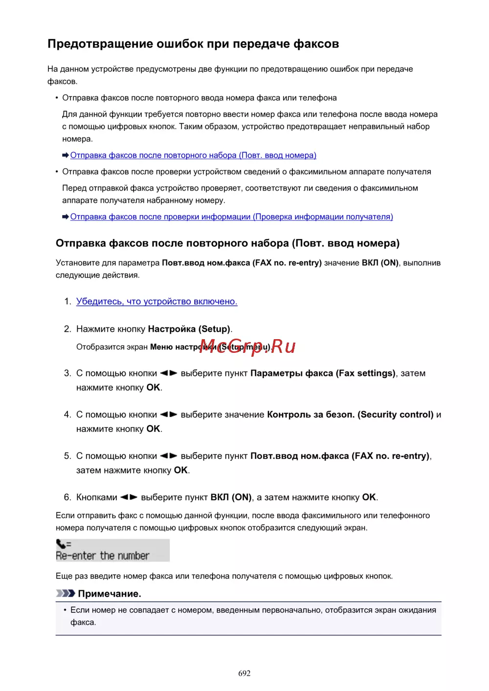 Установите для параметра Повт.ввод ном.факса (FAX no. re-entry) значение ВКЛ (ON), выполнив