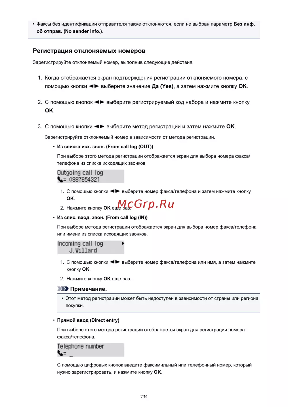 Canon PIXMA MX474 [734/980] Зарегистрируйте отклоняемый номер выполнив следующие действия