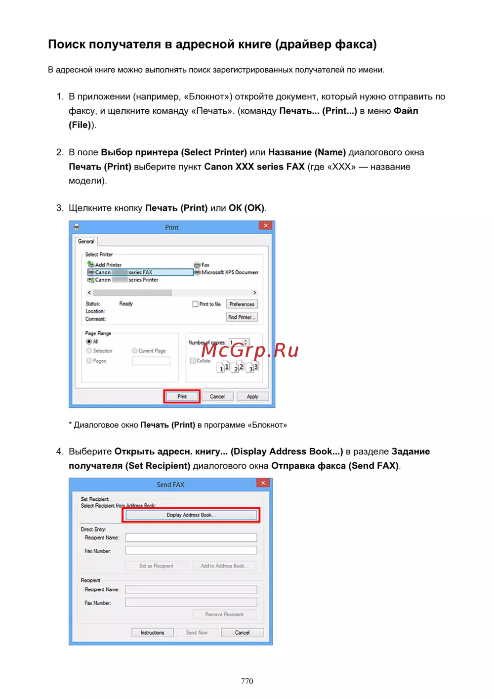 Canon PIXMA MX474 [770/980] Поиск получателя в адресной книге драйвер факса