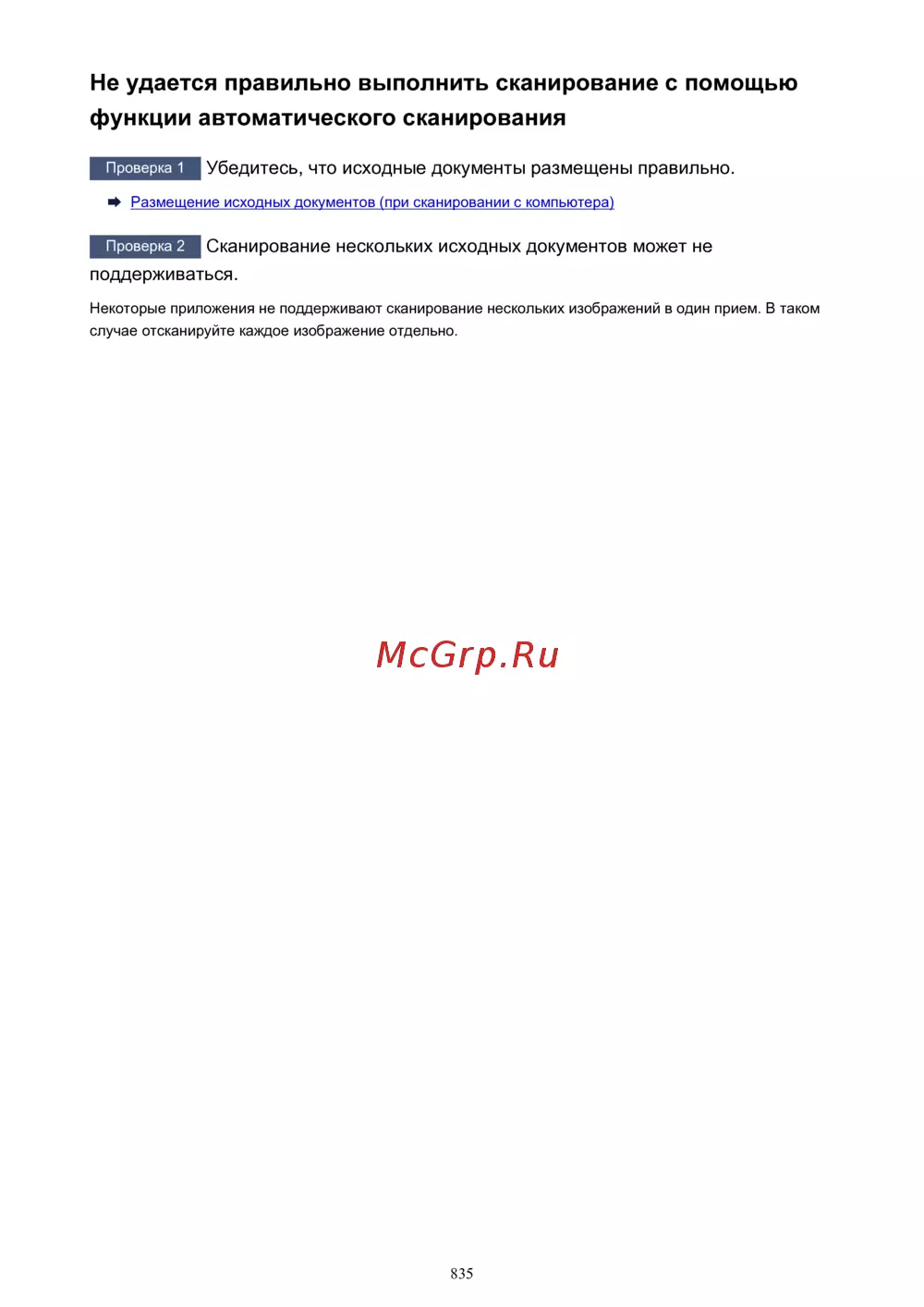 Сканирование нескольких исходных документов может не