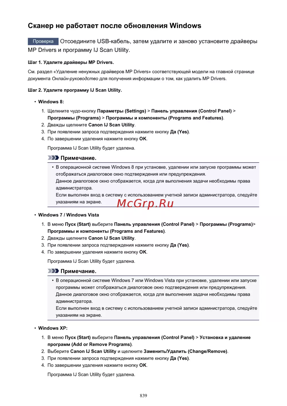 Canon PIXMA MX474 [839/980] Сканер не работает после обновления windows
