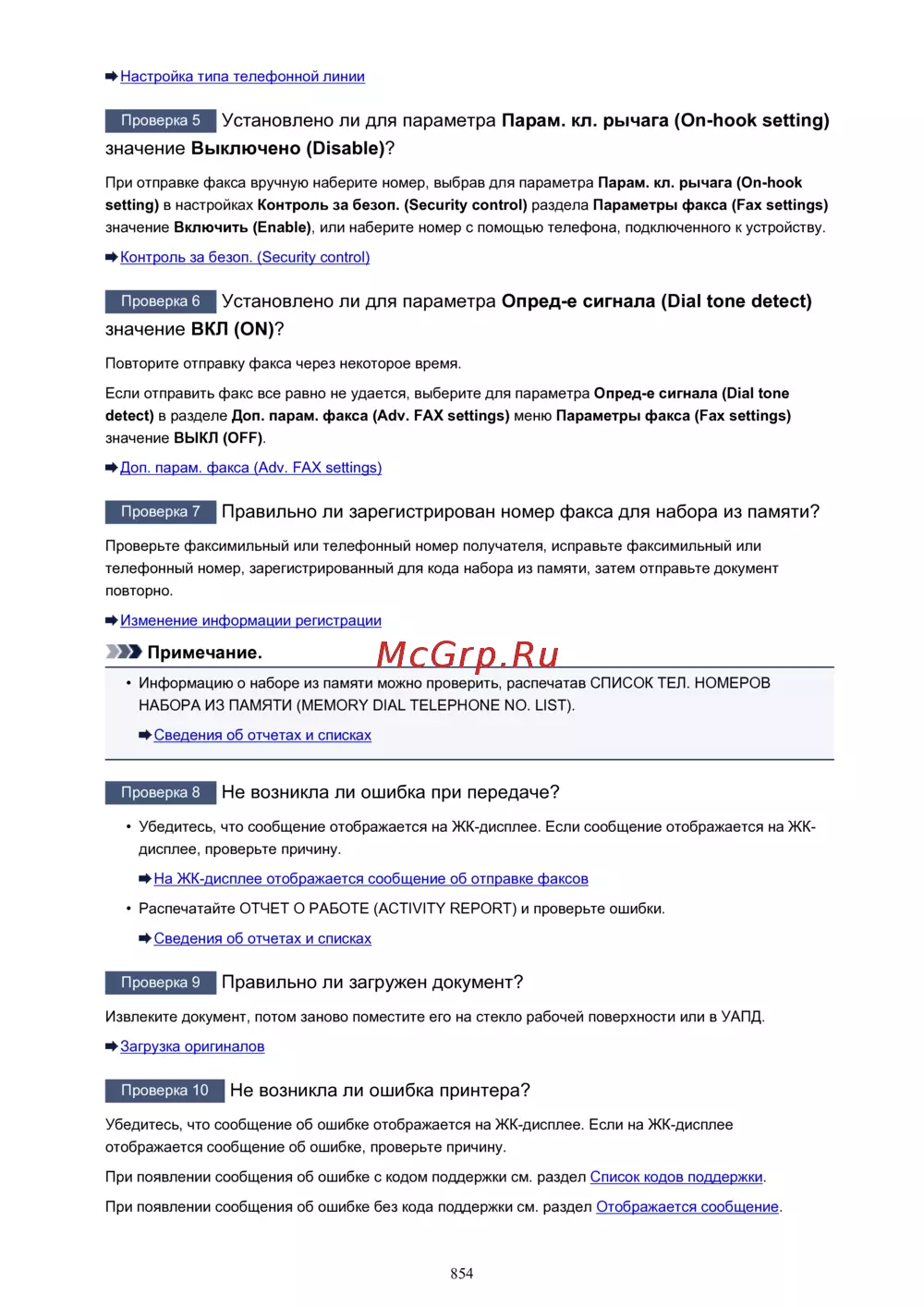 Canon PIXMA MX474 [854/980] Установлено ли для параметра парам кл рычага on hook setting значение выключено disable