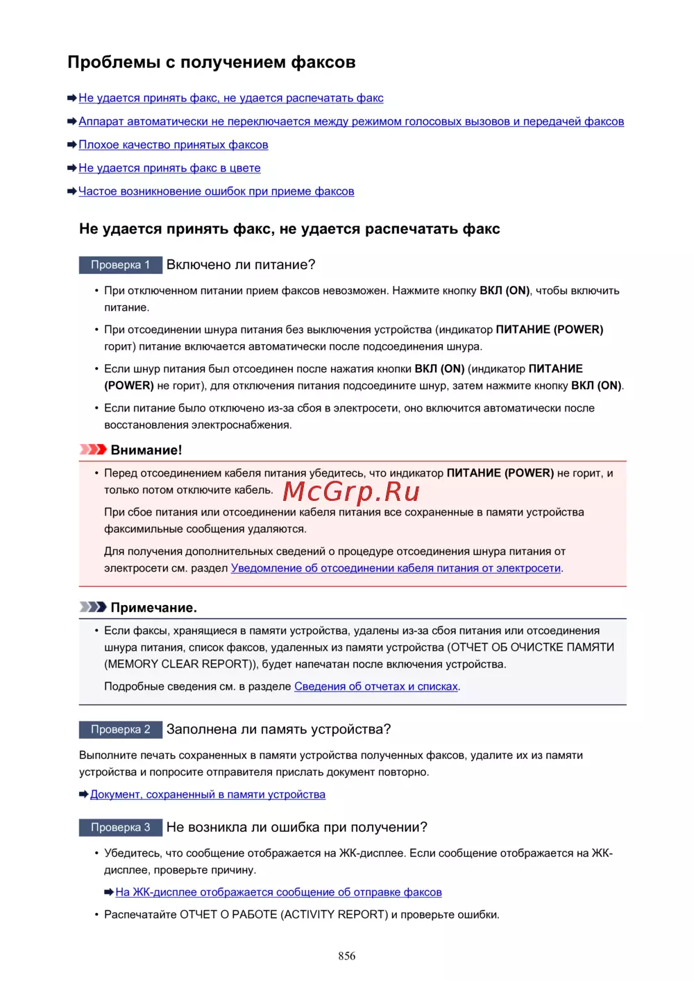 Canon PIXMA MX474 [856/980] Проблемы с получением факсов