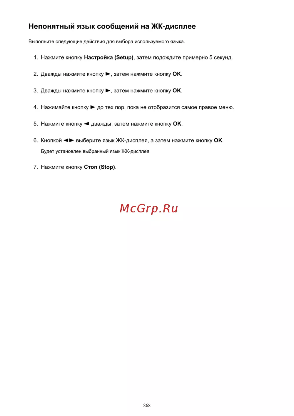 Canon PIXMA MX474 [868/980] Непонятный язык сообщений на жк дисплее