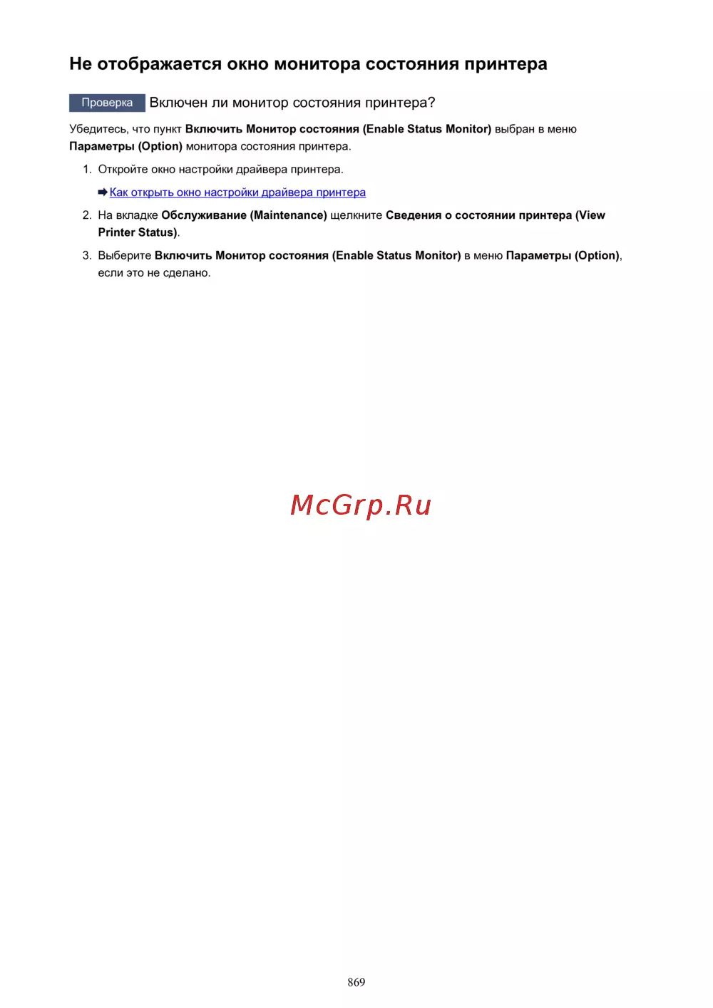 Canon PIXMA MX474 [869/980] Не отображается окно монитора состояния принтера