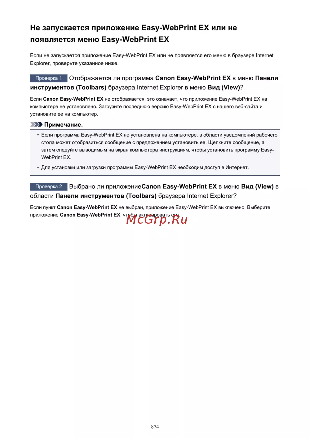 Если Canon Easy-WebPrint EX не отображается, это означает, что приложение Easy-WebPrint EX на