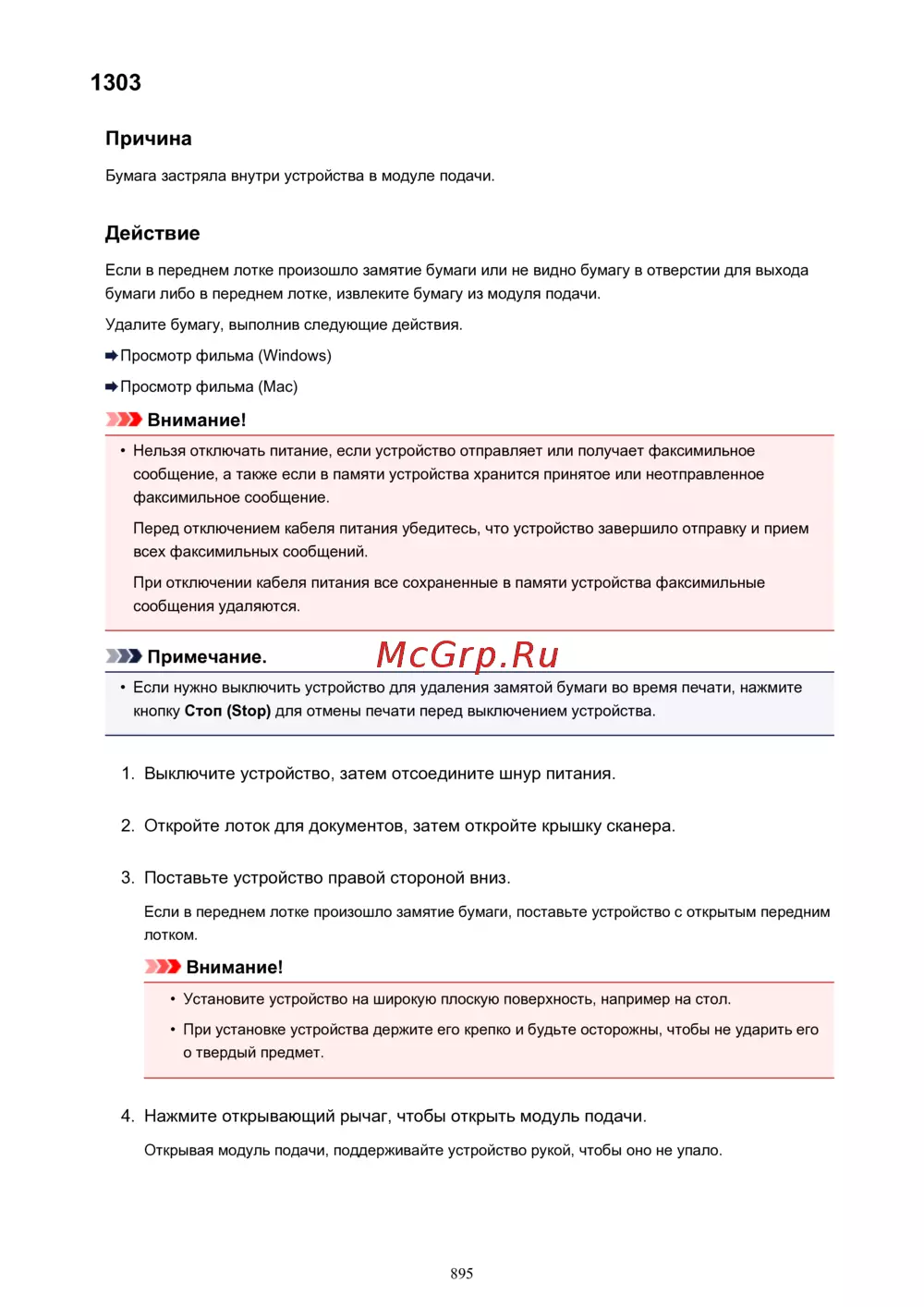 Canon PIXMA MX474 [895/980] Причина