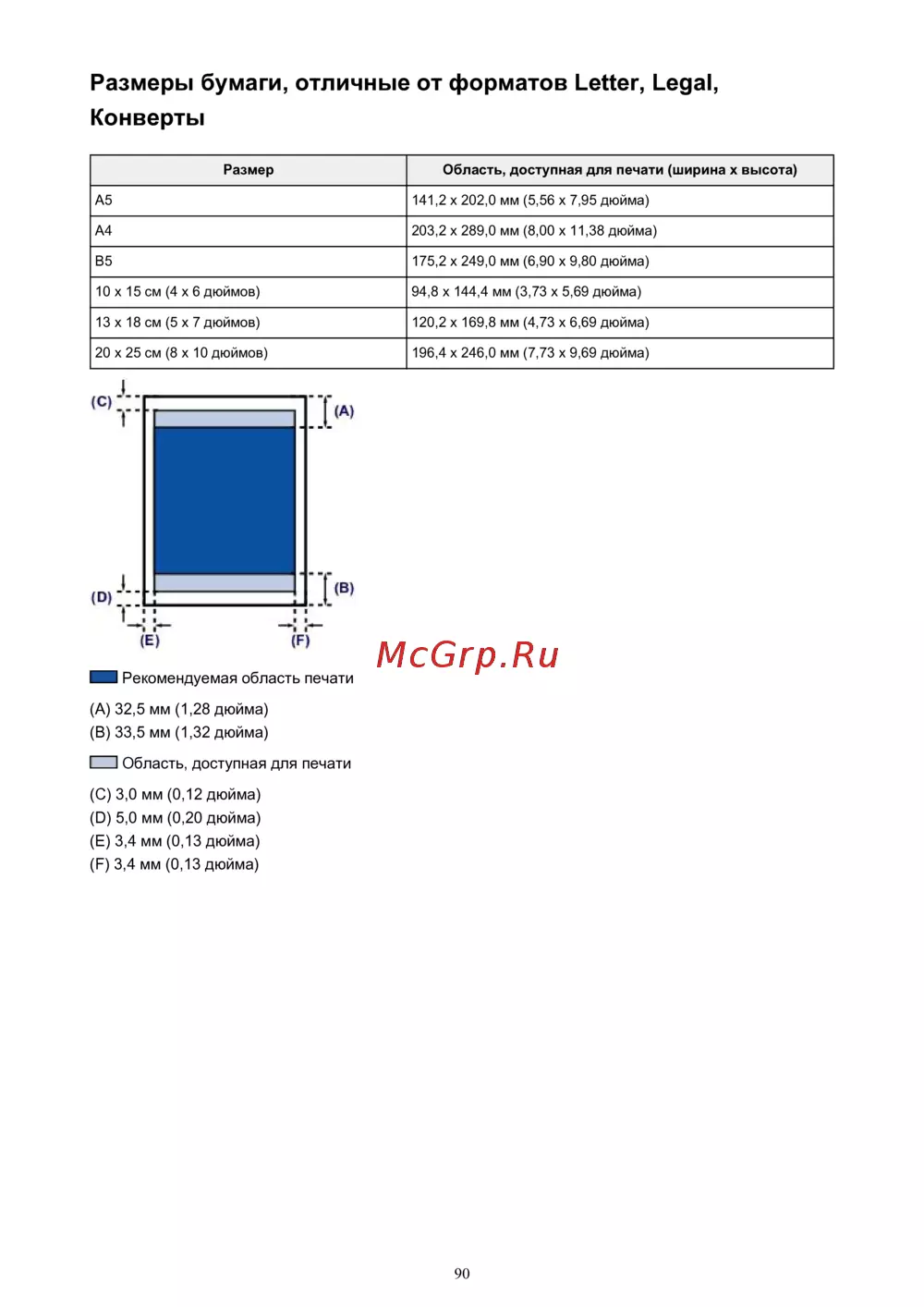 Canon PIXMA MX474 [90/980] Рекомендуемая область печати