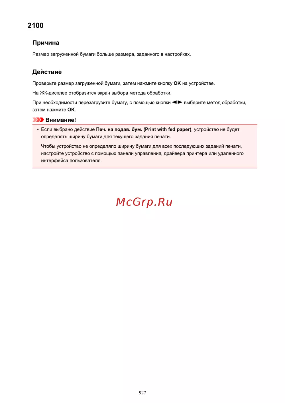 Canon PIXMA MX474 [927/980] Причина