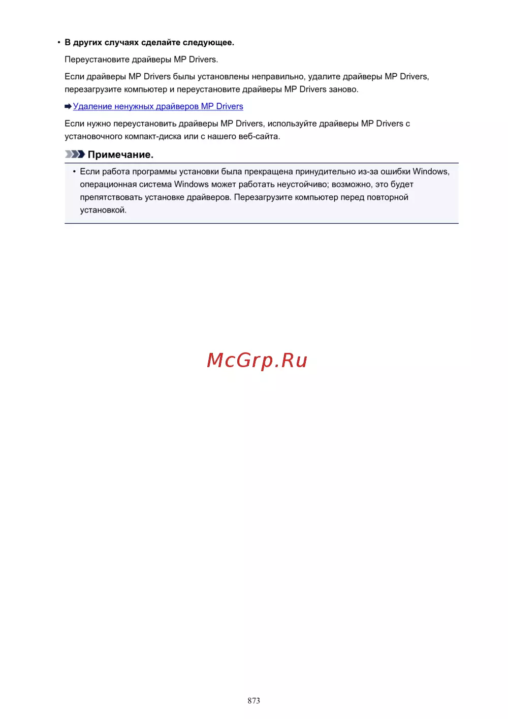 Если драйверы MP Drivers былы установлены неправильно, удалите драйверы MP Drivers,