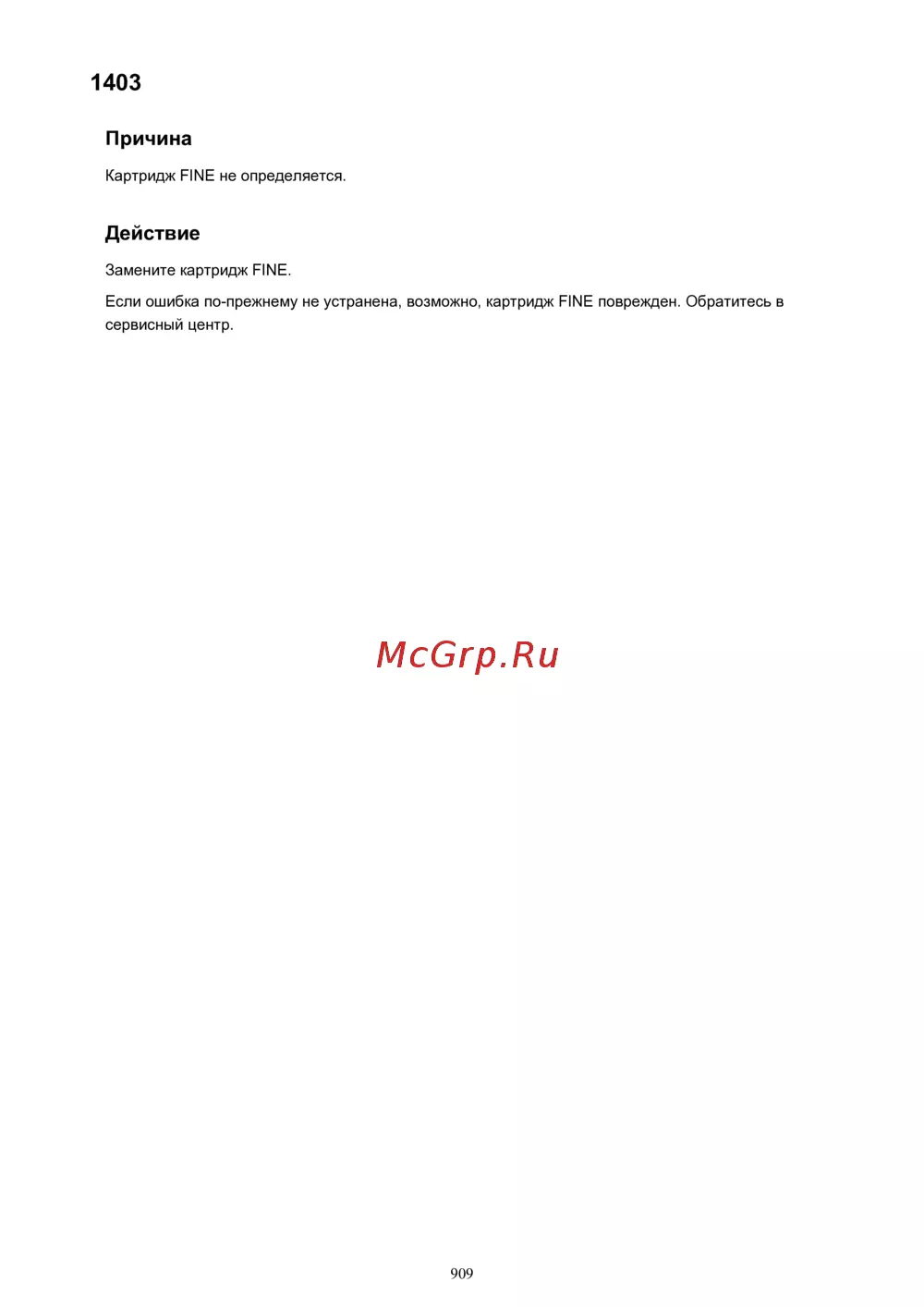 Если ошибка по-прежнему не устранена, возможно, картридж FINE поврежден. Обратитесь в