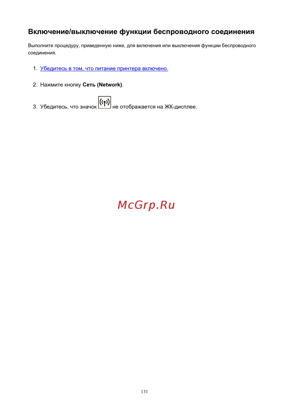Canon PIXMA TS3150 [131/378] Включение выключение функции беспроводного соединения